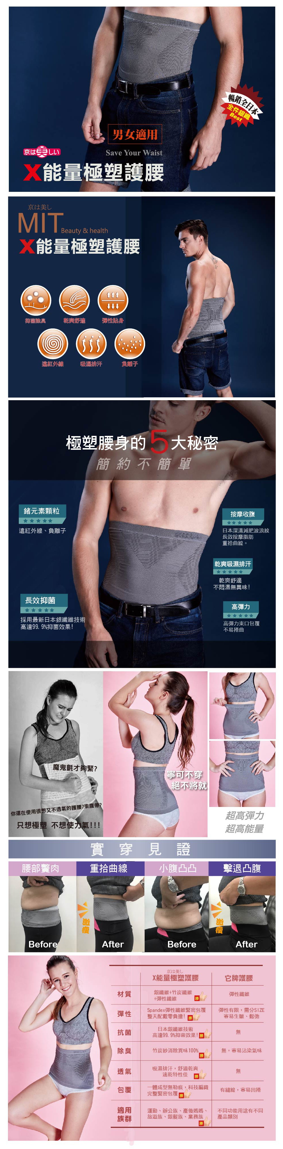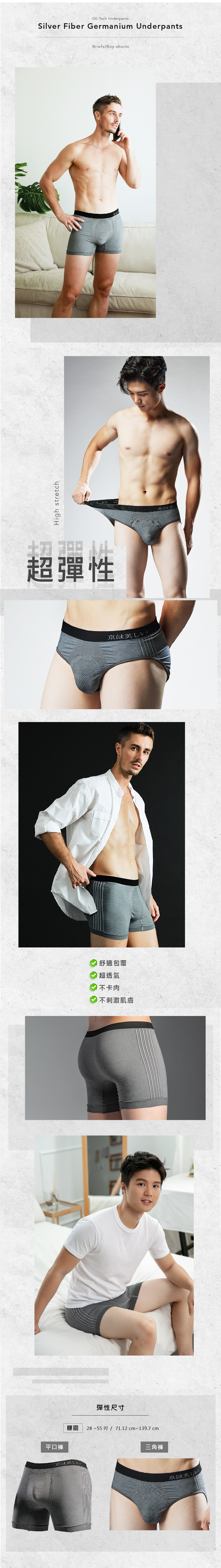 精選布料親膚舒適,採台灣孟宗竹鍛燒竹炭紗,吸濕速乾、消臭特性,立體無縫編織及彈力支撐性好穿不束縛。鍺石材質釋放負離子中和正離子,促進酸鹼平衡,更是健康與舒適的理想選擇。