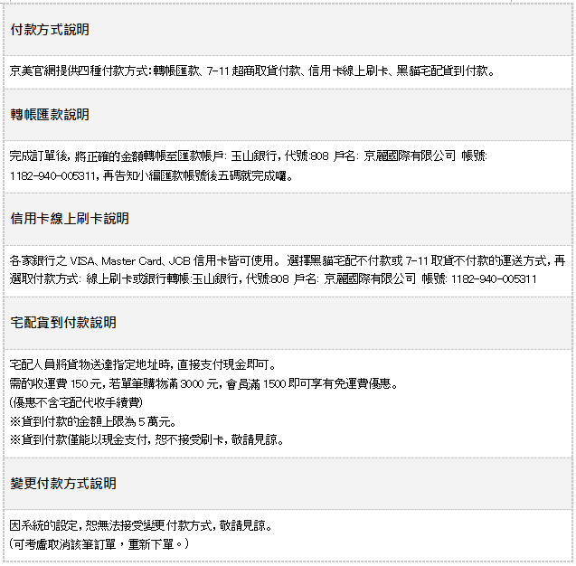 • 貨到付款方式