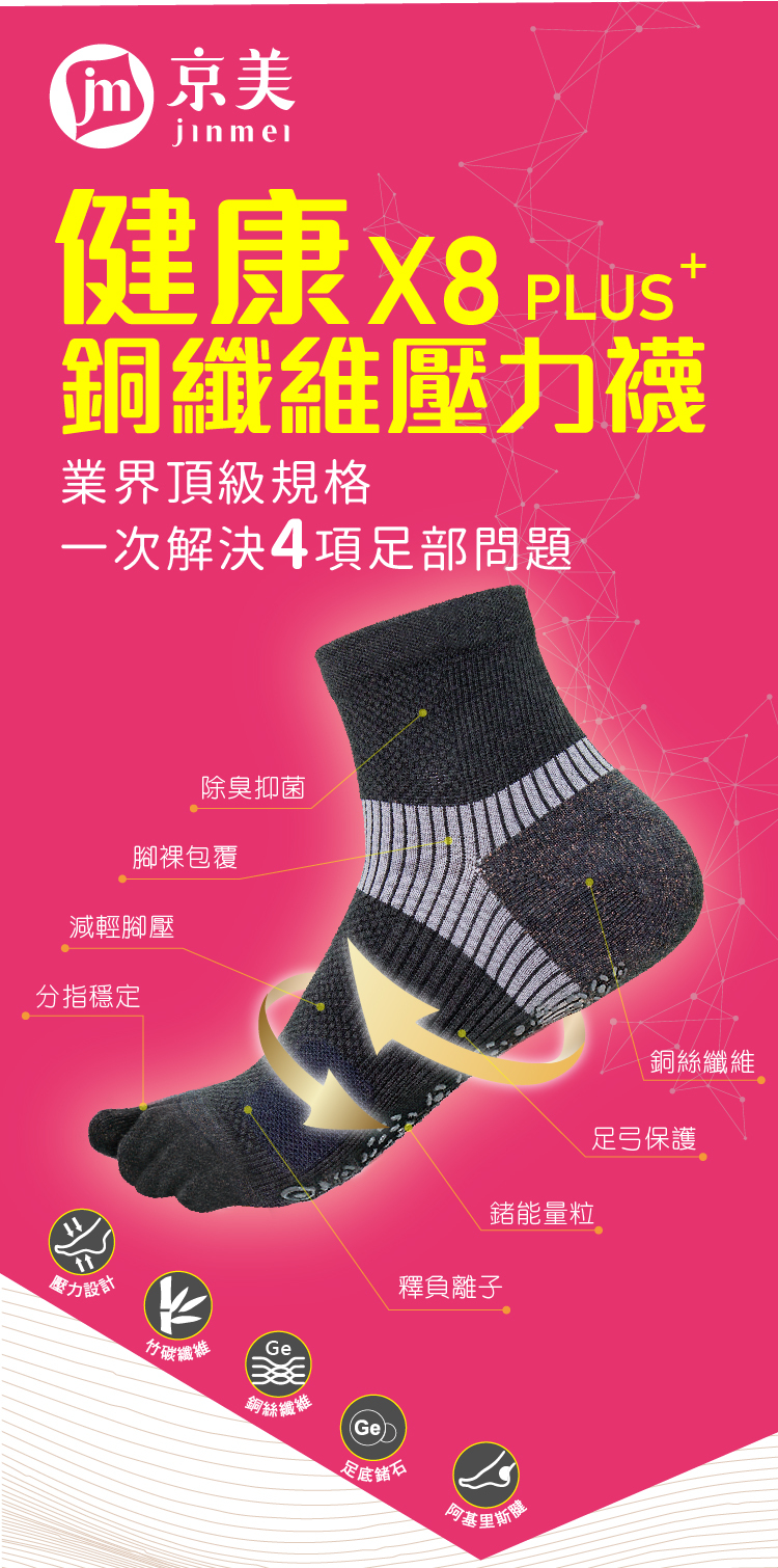 銀纖維健康無痕內衣與逆時健康提臀褲與能量銅纖維襪的組合,京美為您全身由上到下嚴格把關。
