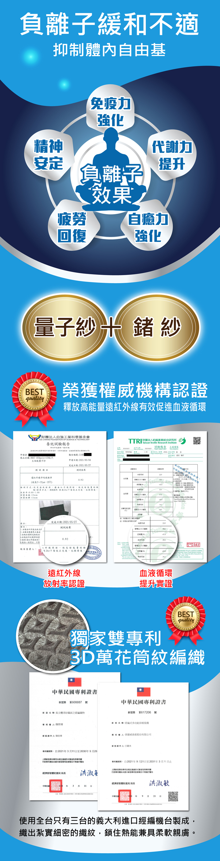 2. 採用鍺紗織成,可釋放遠紅外線及負離子,促進代謝